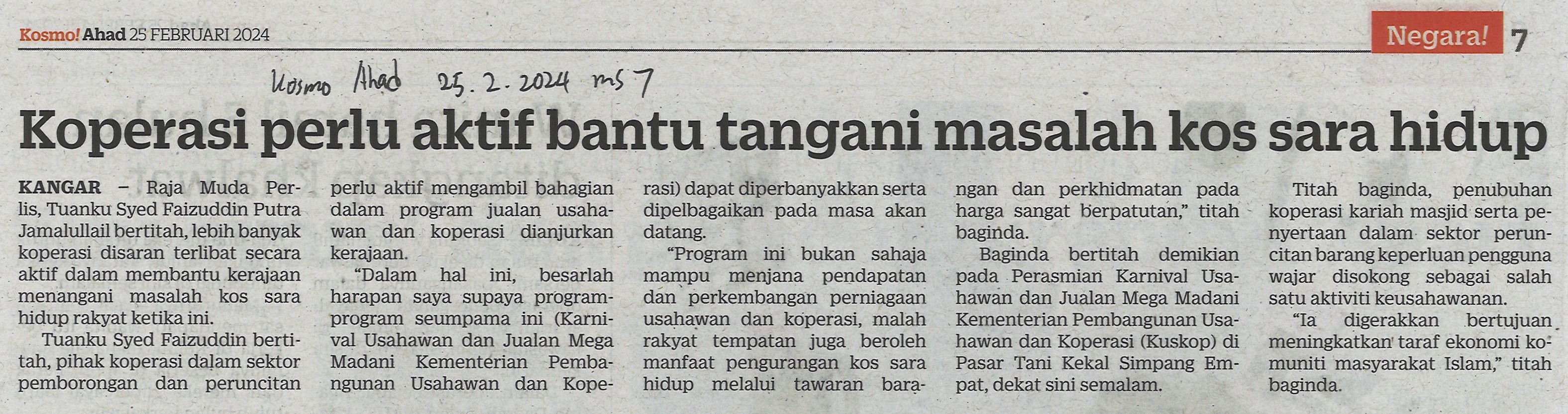 Koperasi perlu aktif bantu tangani masalah kos sara hidup