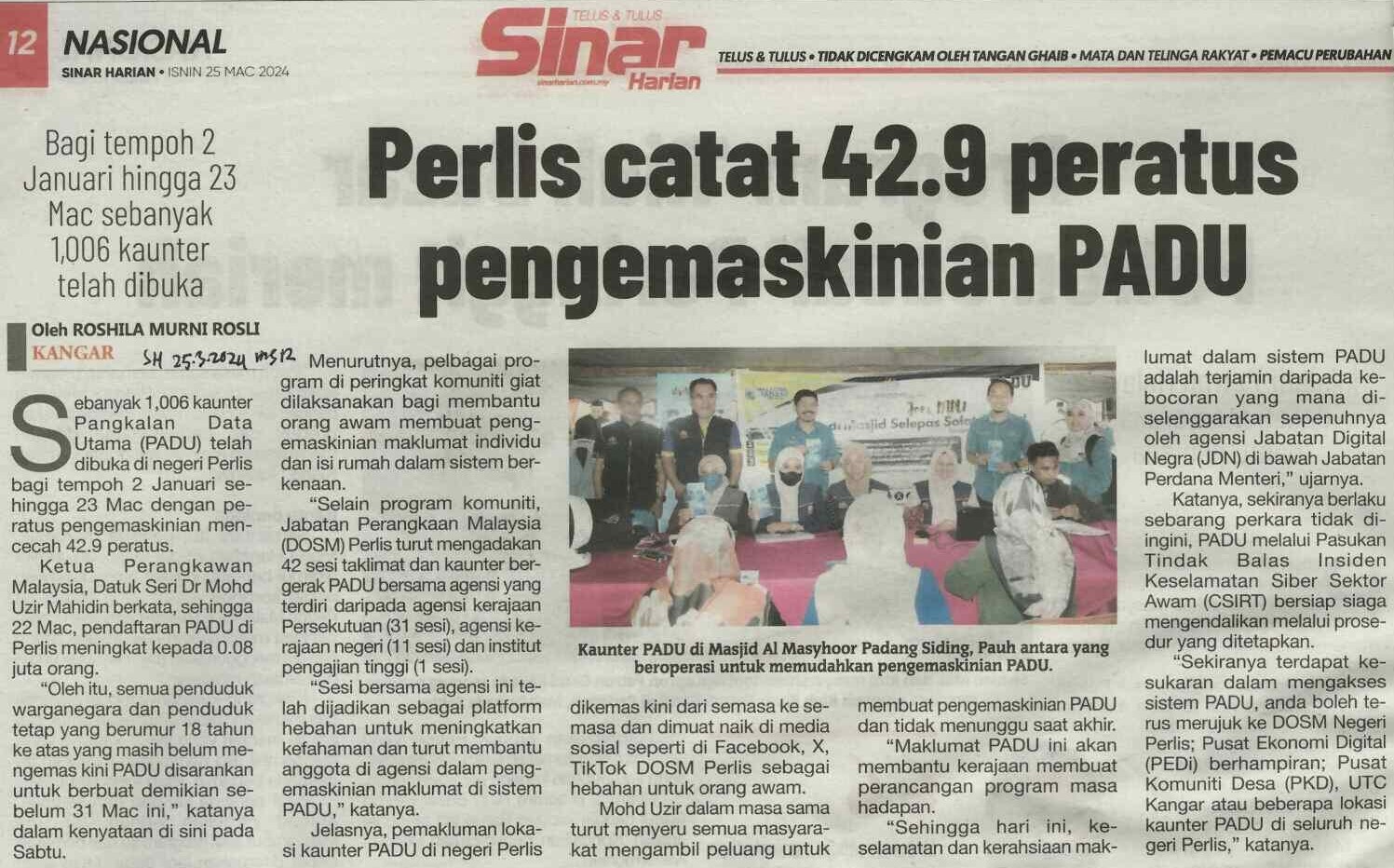 Perlis catat 42.9 peratus pengemaskinian PADU