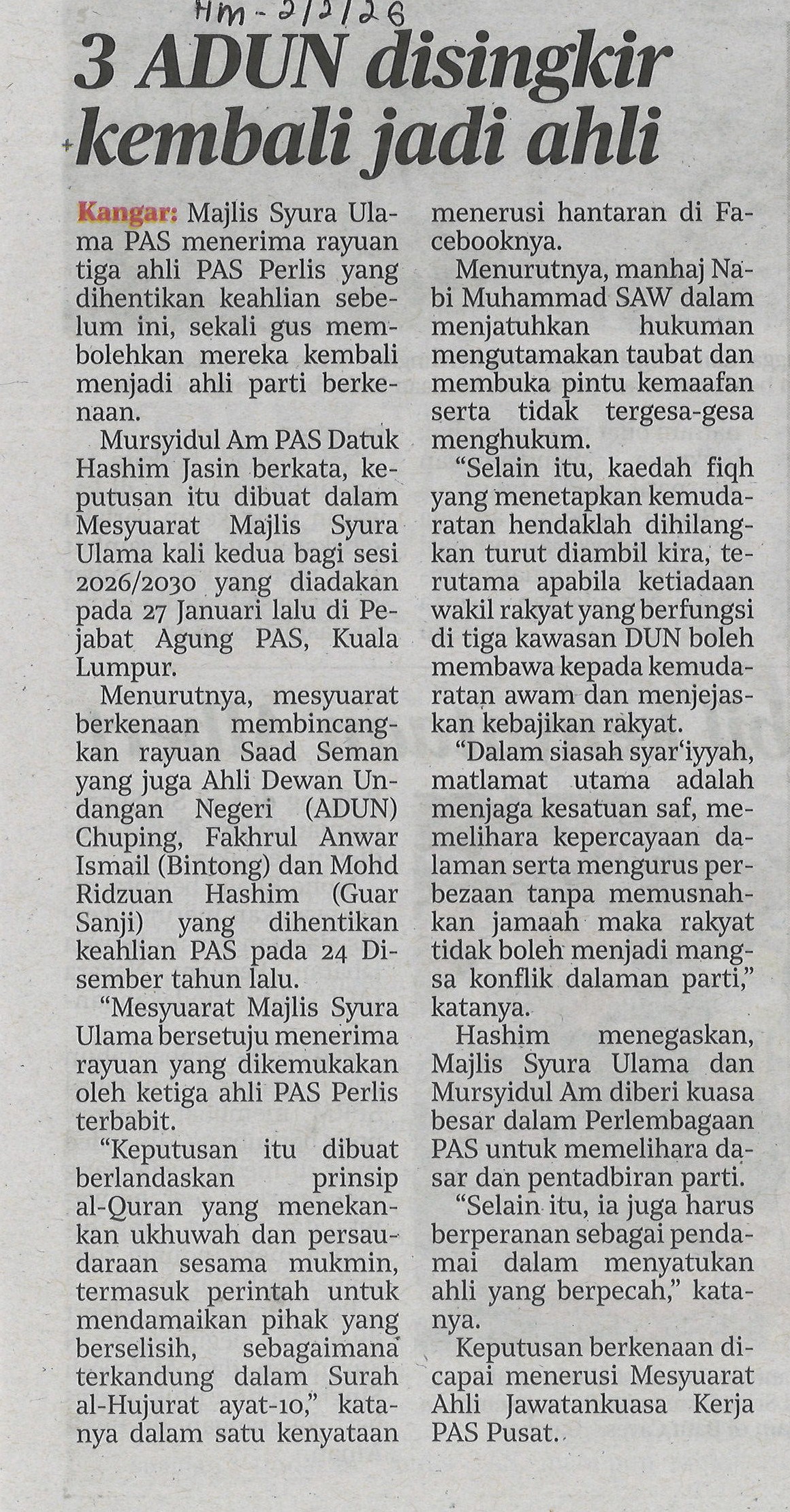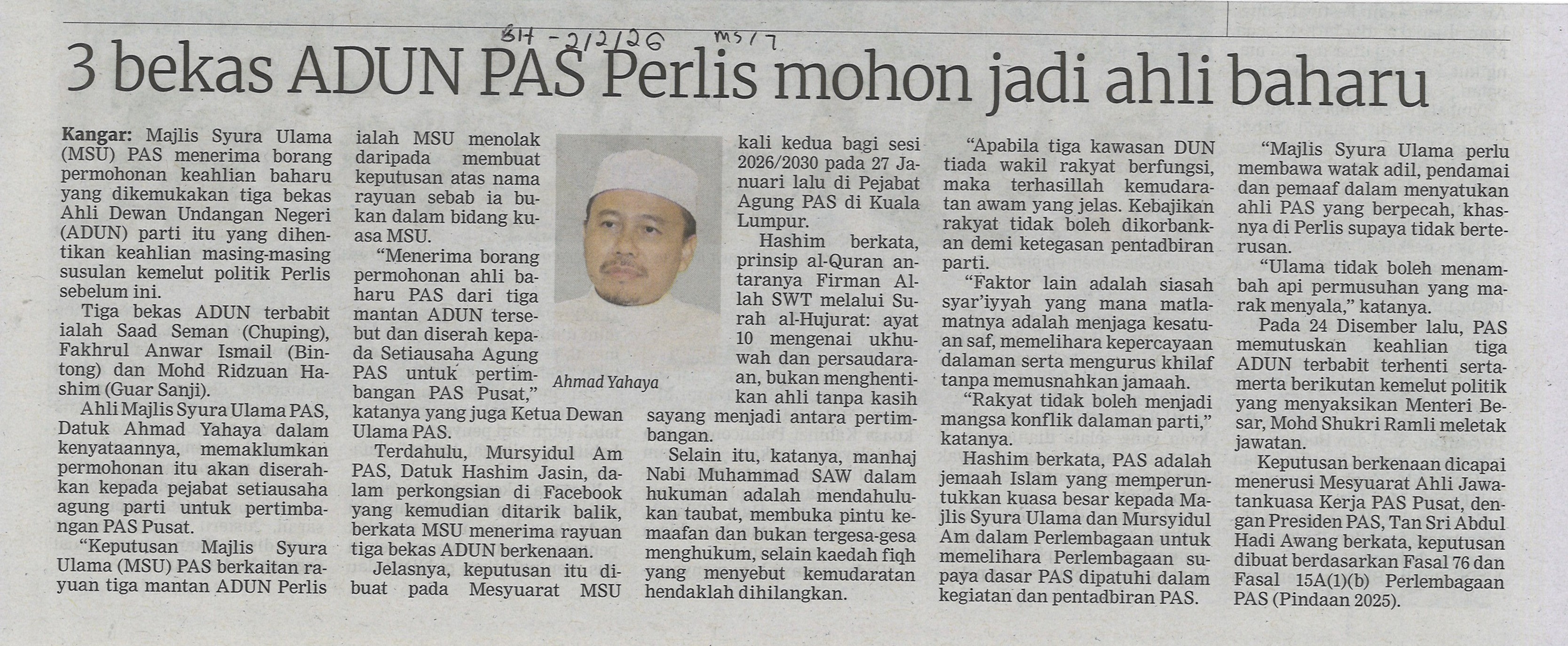 3 bekas ADUN PAS Perlis mohon jadi ahli baharu