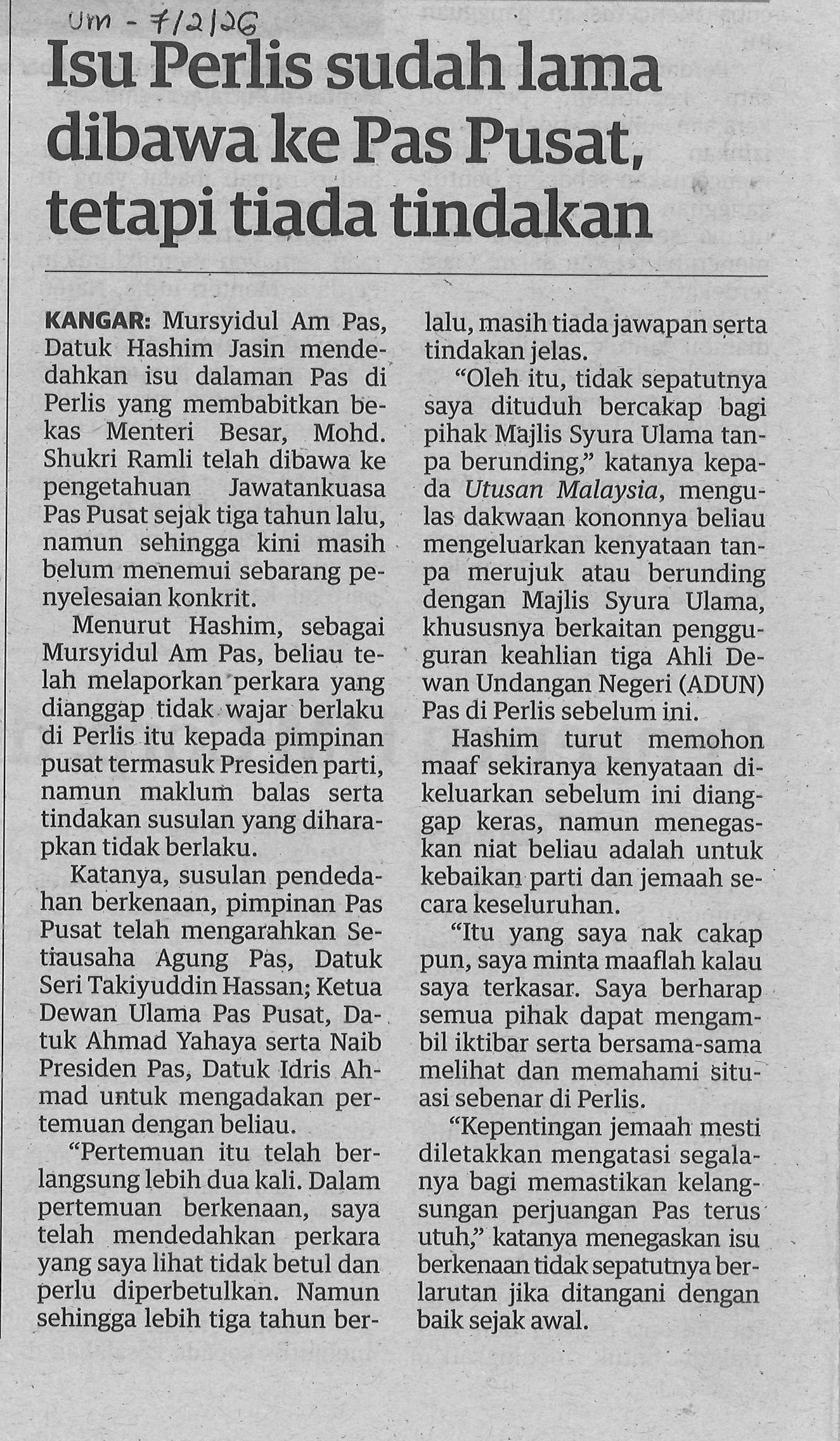 Isu perlis sudah lama dibawa ke Pas Pusat