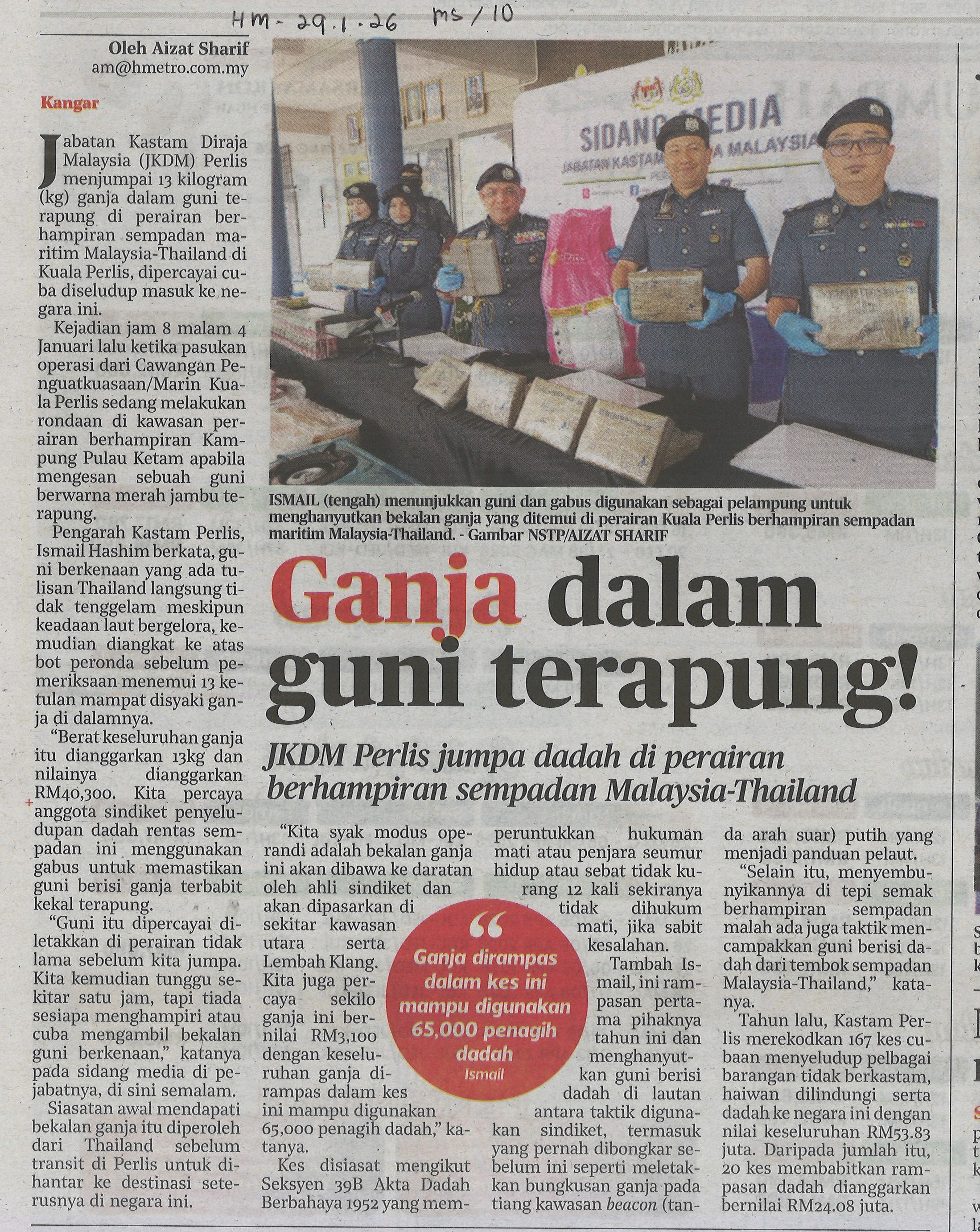 Ganja dalam guni terapung!