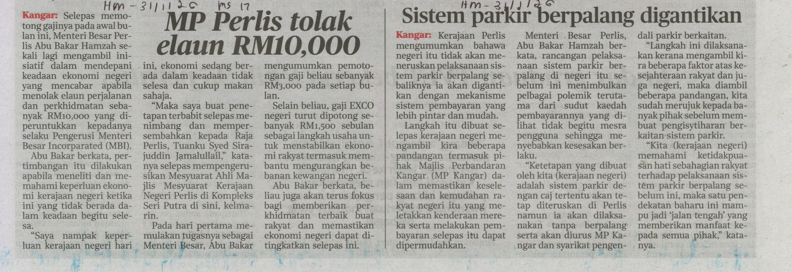 MP perlis tolak elaun rm10,000