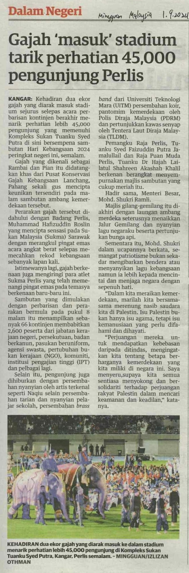 Gajah 'masuk' stadium tarik perhatian 45,000 pengunjung Perlis