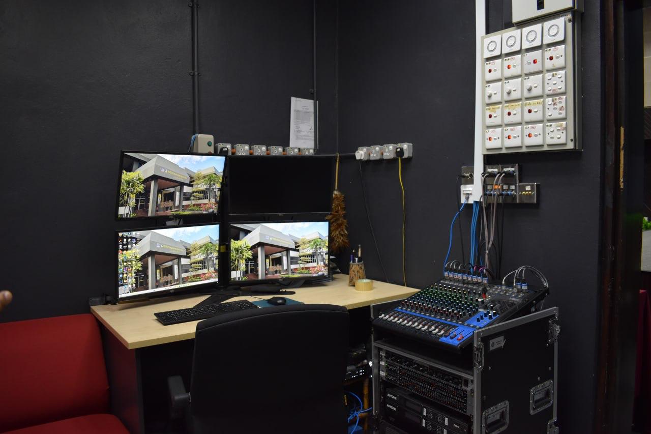 - Penyewa dilarang menampal atau memasang banner/streamer/hiiasan menggunakan gam, pelekat, stapler atau apa-apa kaedah lain pada dinding atau peralatan auditorium.